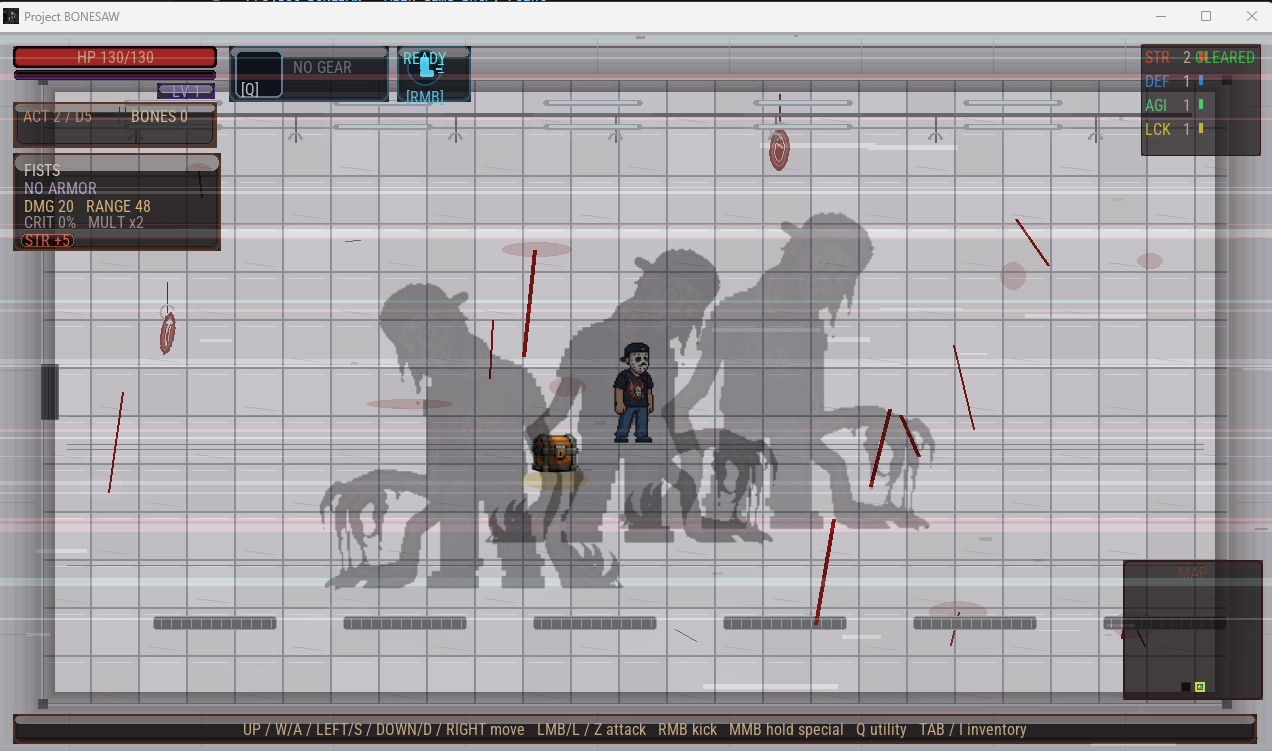 PROJECT BONESAW is a hyper-violent top-down action roguelike where every second is chaos. Every fight is fast, brutal, and unpredictable. Tear weapons from fallen enemies, use the environment to your advantage, and turn each room into a blood-soaked massacre on your way back to the surface.